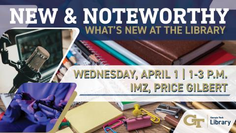 Join the Georgia Tech Library on Wednesday, April 1, 2026, from 1:00–3:00 PM in the Interactive Media Zone (IMZ) on the Grove Level of Price Gilbert Memorial Library for New & Noteworthy: What's New at the Library.