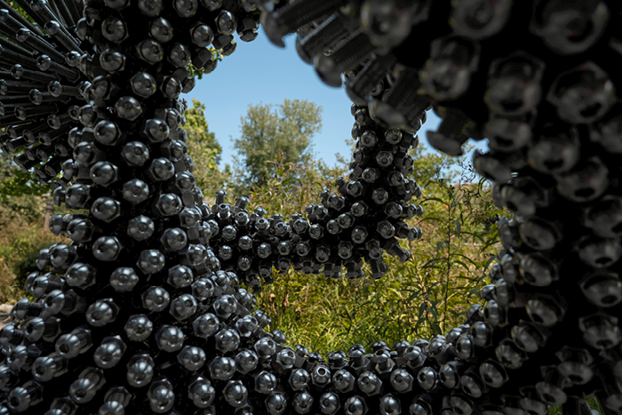 Like the other two pieces, Aceso and Iaso, Because of You is based on the white blood cell, the macrophage, and it is installed at the Engineering Biosystems Building. The biomedical research at the EBB aims to cure implacable diseases through either modifying or engineering certain cells that could protect us. Because of You is a celebration of this special work.