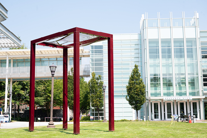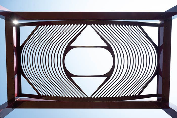 Big Red Tumpkin Artist Verina Baxter Installed 2013 Painted aluminum and stainless steel 13'2" H x 6'2" D x 10' W; 800 pounds Installed in 2013 as part of the Engineered Art collection.
