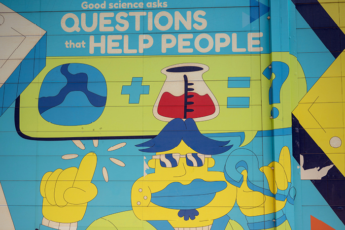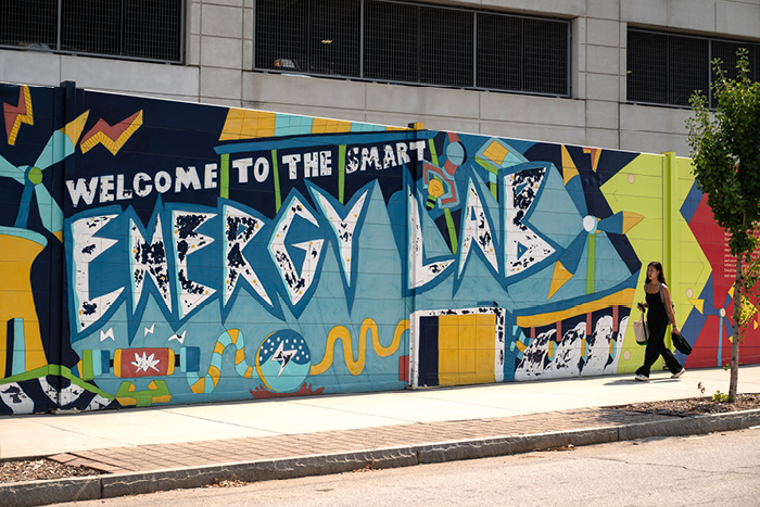 George F. Baker III created a mural at the new microgrid in Tech Square. The microgrid opened in June, 2021 in partnership with Georgia Power and will provide insight on how smart energy management systems, such as the one installed at the Coda data center, can interact with the grid to achieve optimal energy utilization.